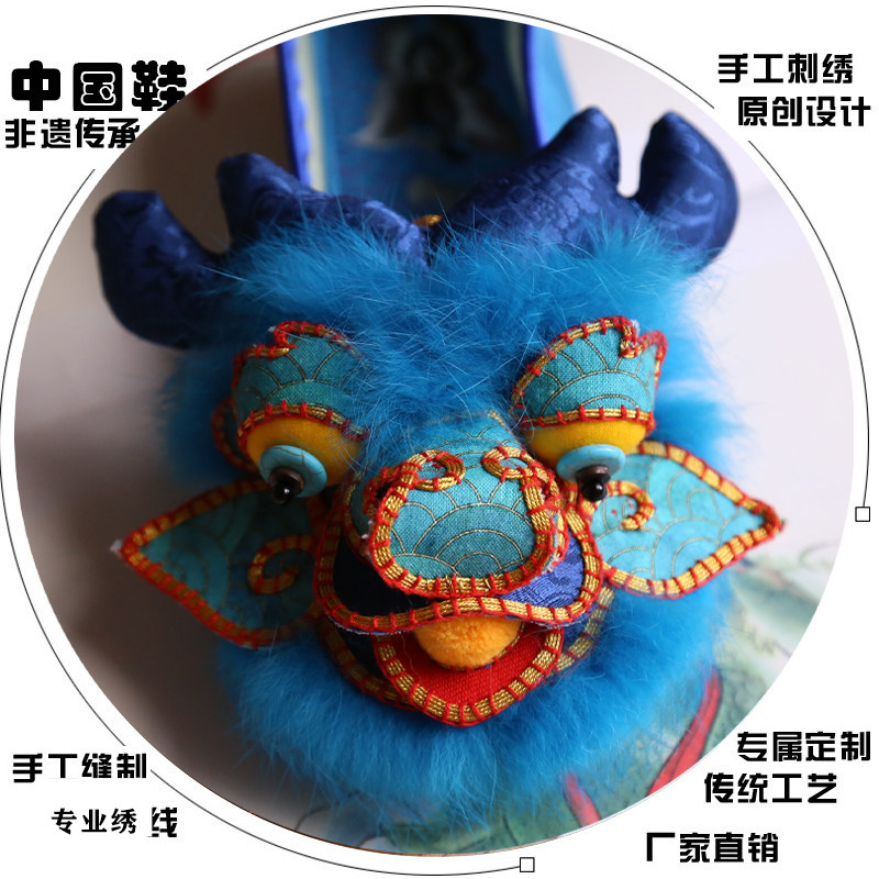 淘宝20非遗新款走绣坊重工立体龙头鞋手工绣花鞋复古平底民俗龙的传人
