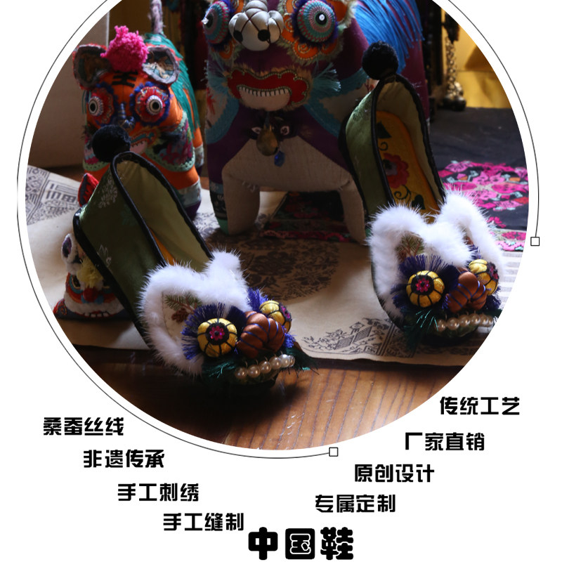 淘20非遗新款走绣坊重工立体龙头鞋手工绣花鞋复古平底民俗龙的传人