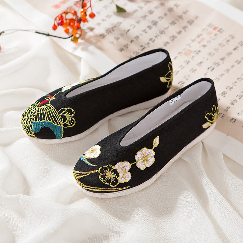 北京女绣花鞋平底牛筋底汉服民族风春秋单鞋中国风复古跳舞鞋软底