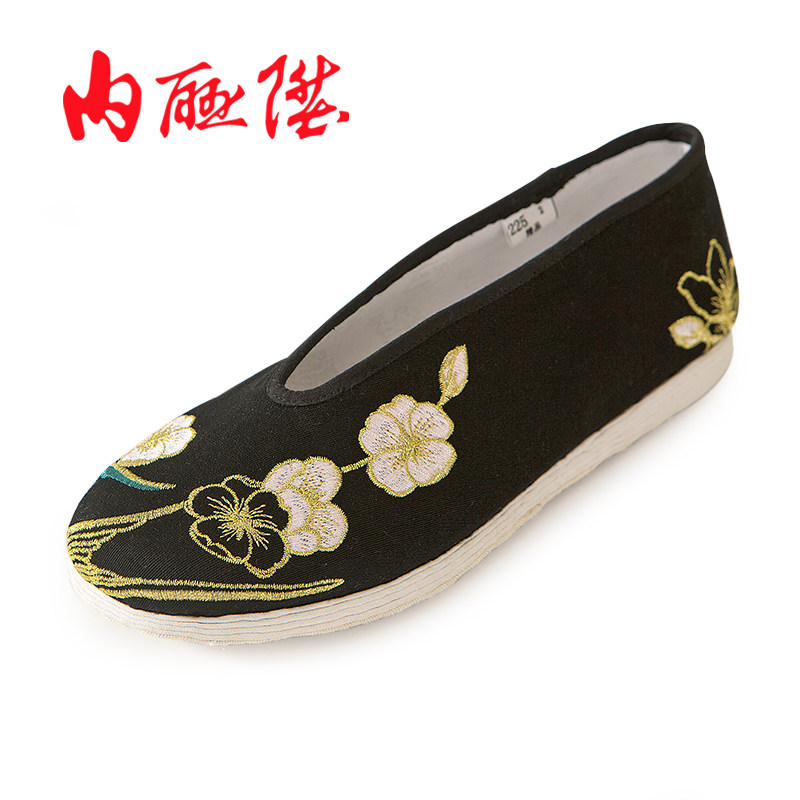 内联升布鞋女新款手工千层底女鞋复古翘头汉服鞋传统绣花鞋8667A