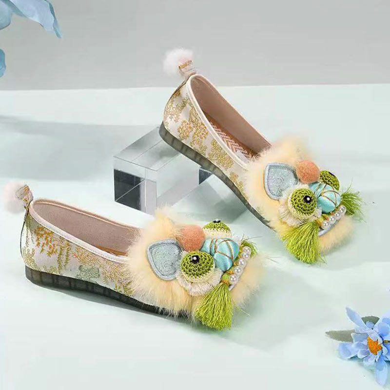 北京女绣花鞋平底牛筋底汉服民族风春秋单鞋中国风复古跳舞鞋软底