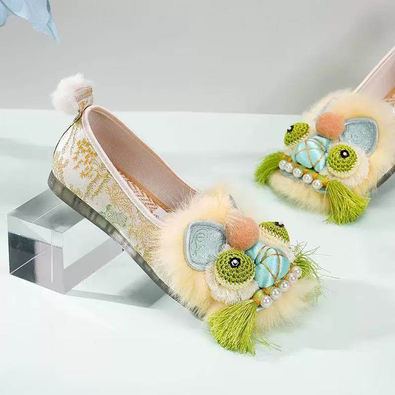 曾黎同款舞绣缘原创手工虎头鞋女成人红色汉服鞋新中式平底绣花鞋