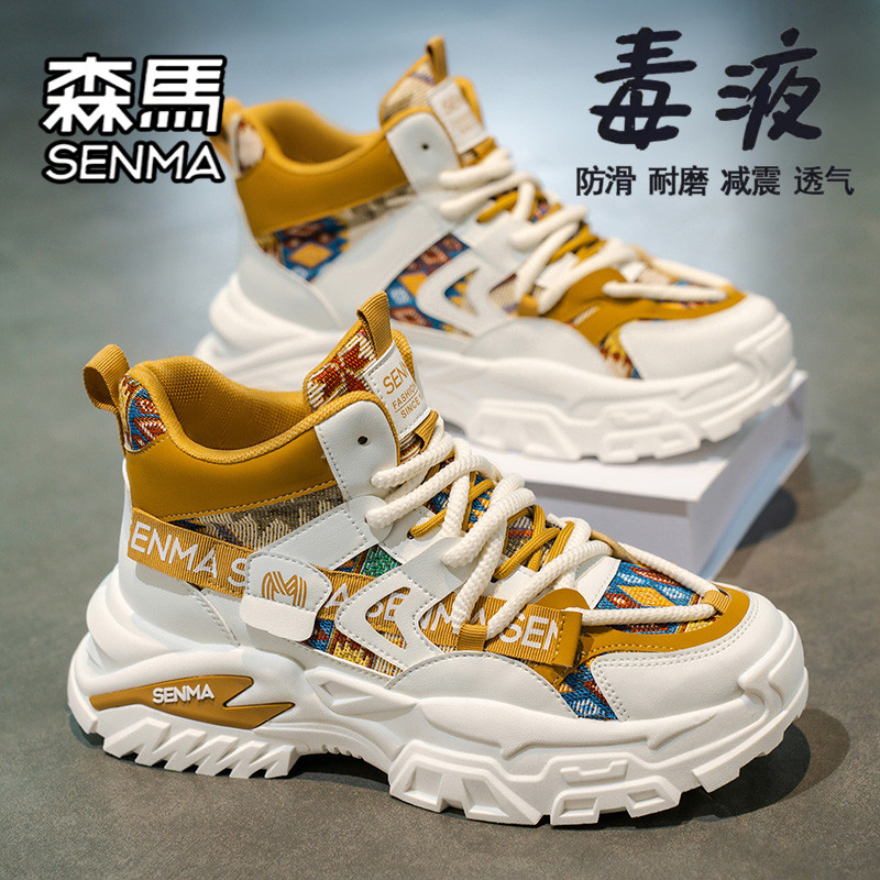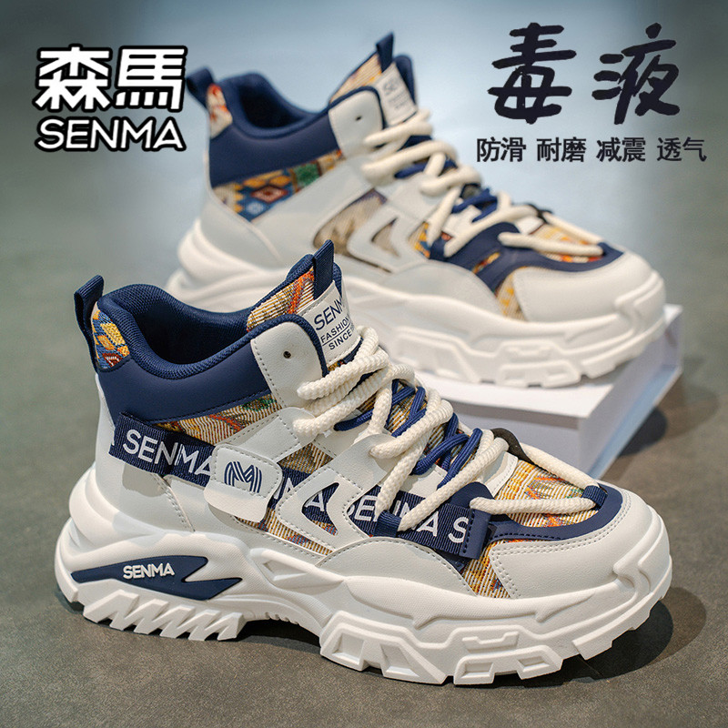 森马高帮男鞋冬季款,融合潮流与实用,采用优质皮面材质,具备出色防水性能,轻松应对雨雪天气。鞋身设计时尚百搭,高帮造型有效保暖护踝,适合冬季日常穿搭。厚底设计不仅提升整体造型感,更兼具隐形增高效果,行走舒适不累脚。结合老爹鞋经典元素,复古中透着现代气息,适合运动、休闲、跑步甚至轻度篮球活动。轻质缓震鞋底提供良好回弹与支撑,长时间穿着依然舒适。无论是搭配牛仔裤、束脚裤还是工装风,都能轻松驾驭,是冬日街头型男的必备潮品。