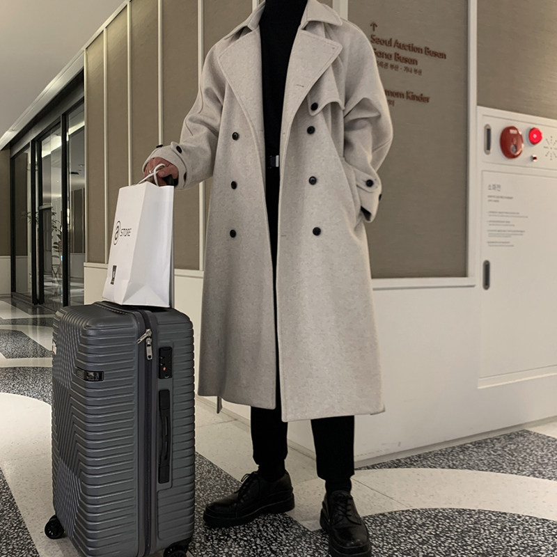 淘冬季毛呢大衣男中长款韩版过膝加厚呢子外套ins潮流韩系风衣呢料