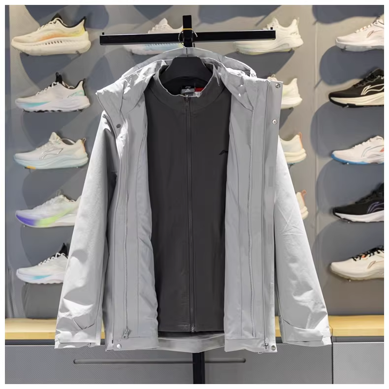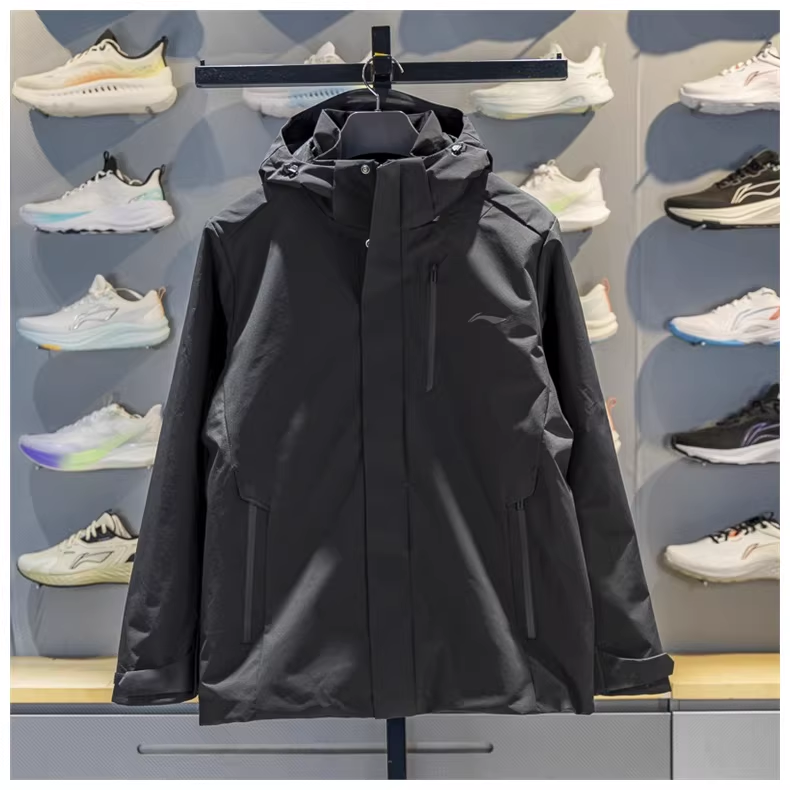 天李宁运动风衣男士三合一舒适亲肤宽松百搭户外休闲摇粒绒连帽外套