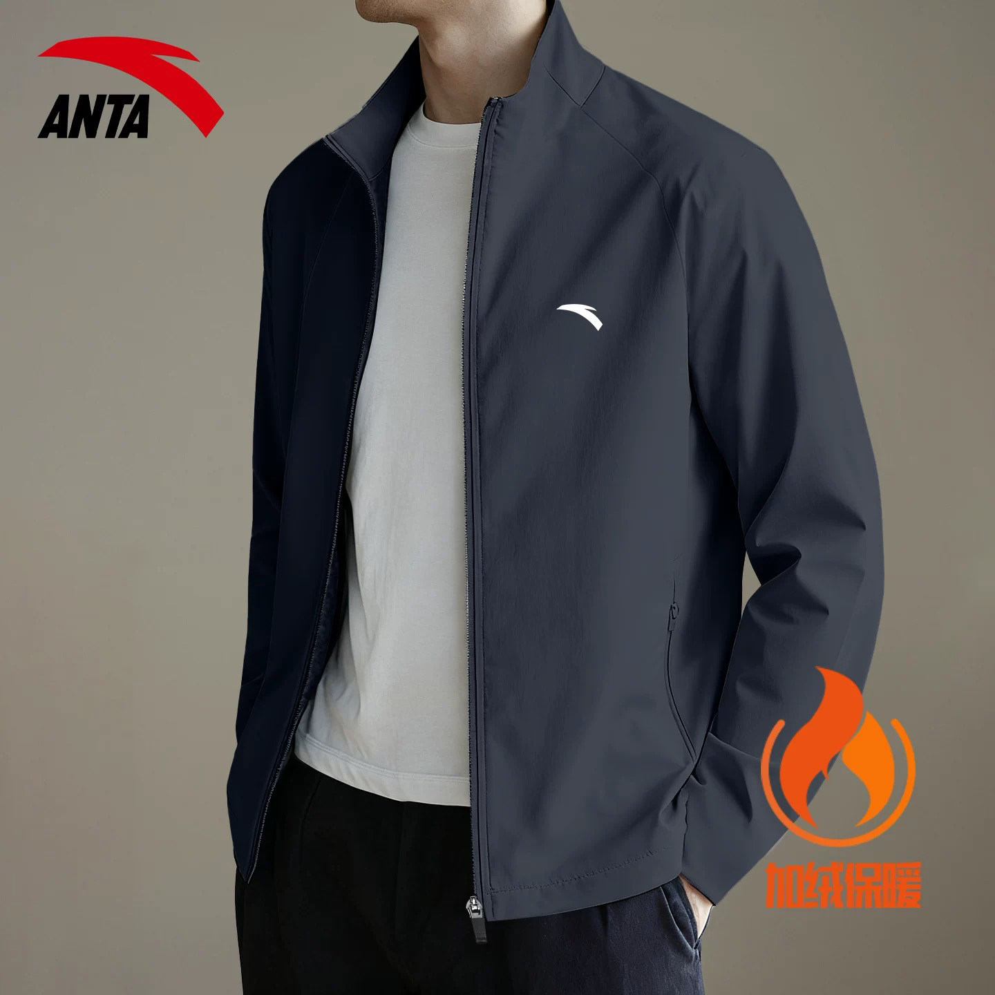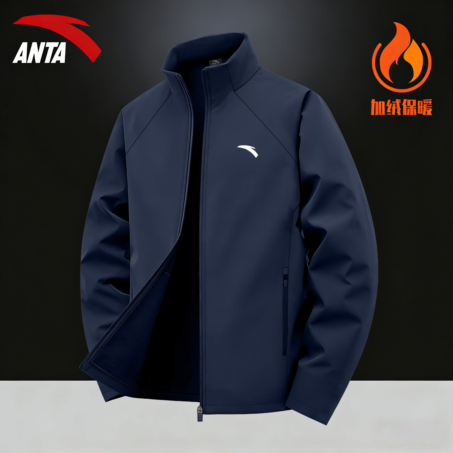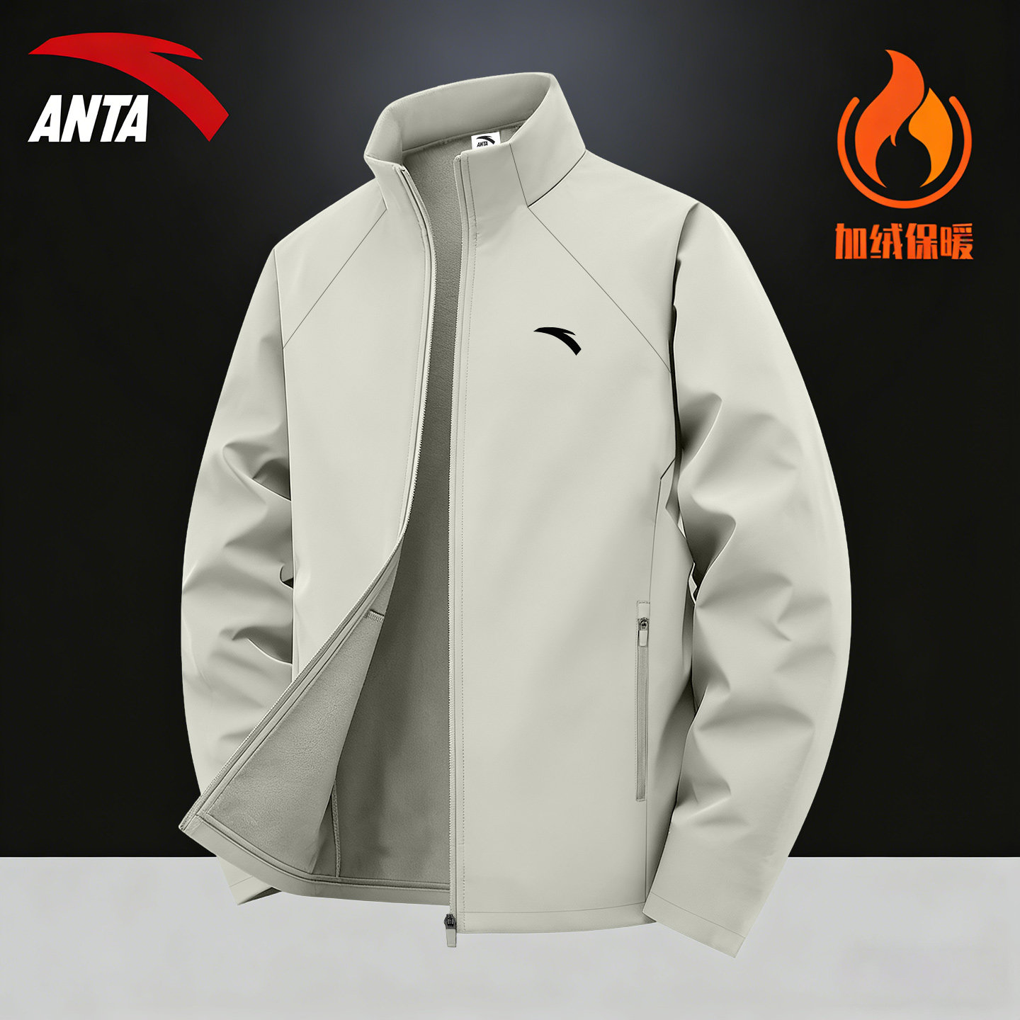 天猫安踏男款外套男士开衫加绒夹克2026春季官方新款加厚立领运动风衣