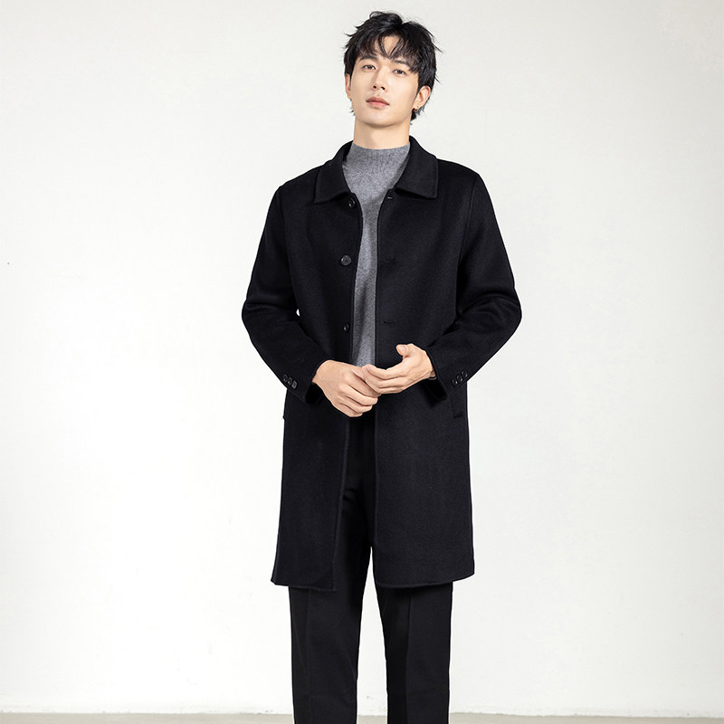 天猫100%纯羊毛大衣男中长款双面呢外套商务休闲羊毛呢子风衣毛呢外套