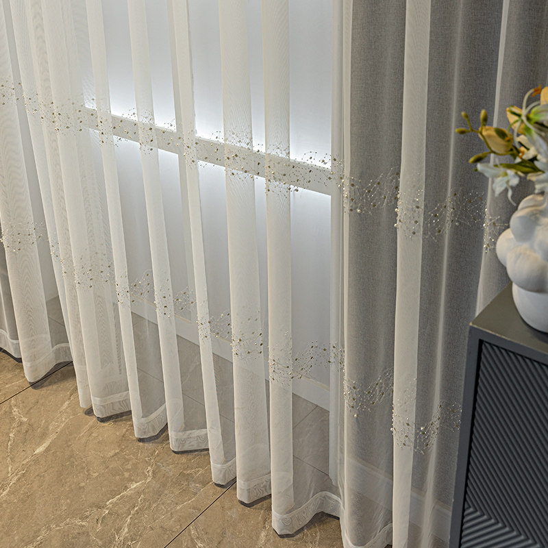 天法式梦幻窗纱高端刺绣纱帘客厅卧室轻奢遮光隔热韩式绣花窗帘韩式