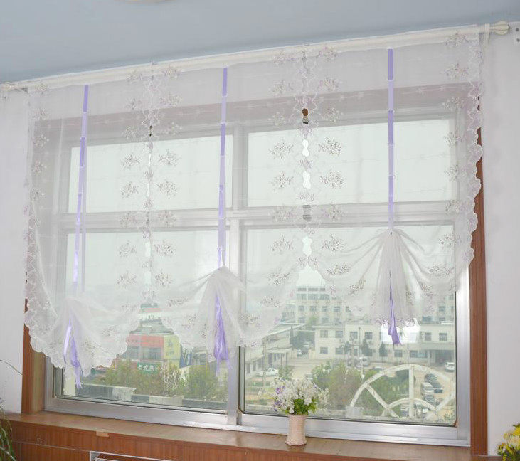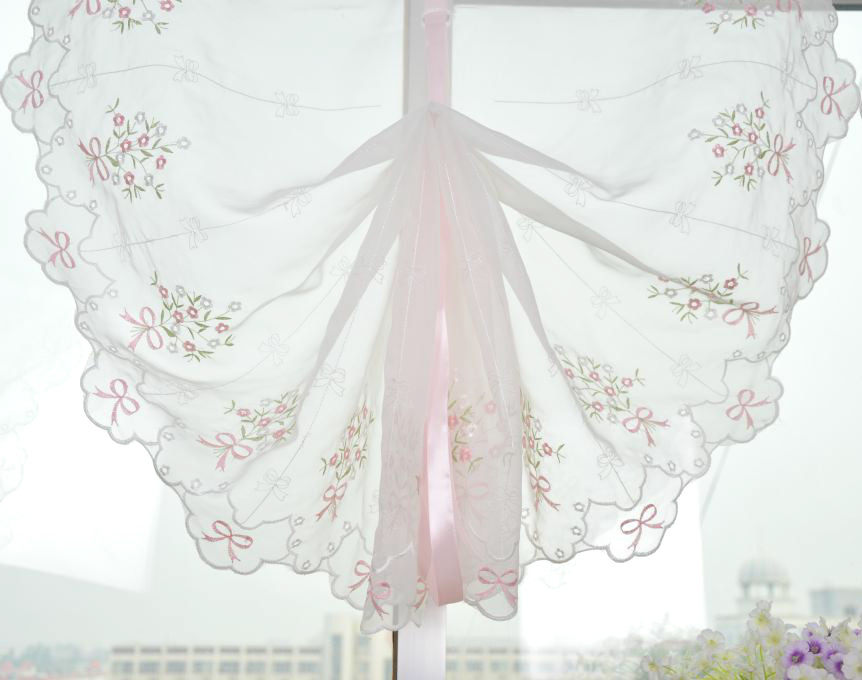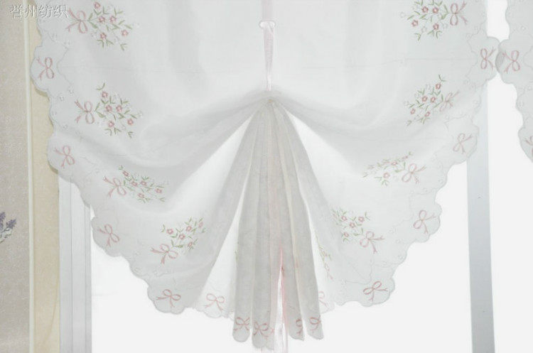 淘宝唯美粉色蝴蝶结 成品窗帘卧室气球帘刺绣升降帘提拉帘罗马帘窗纱