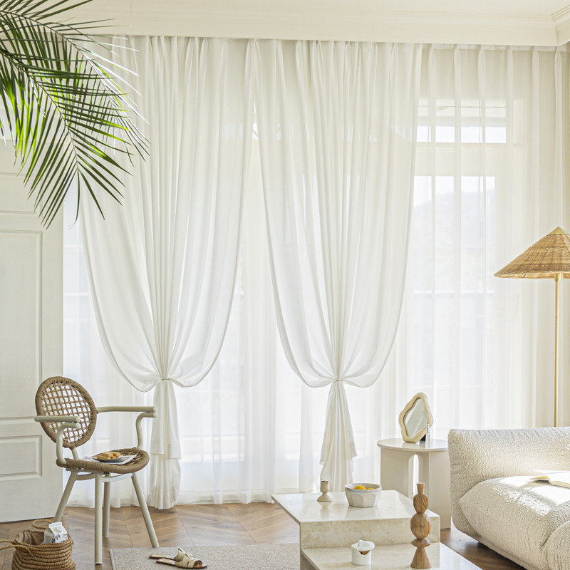 客厅窗帘免打孔透光不透人纱帘绣花白纱飘窗隔断窗纱阳台防晒加厚