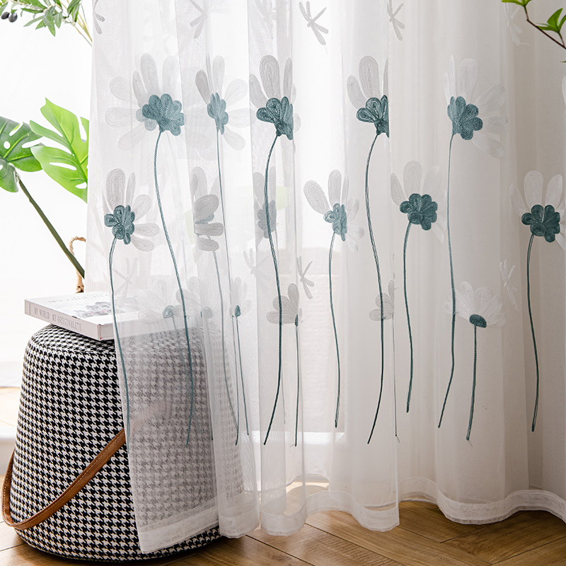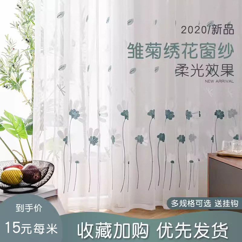天猫小清新!网红雏菊白沙窗帘纱帘防晒简约卧室飘窗遮光隔断窗纱纱帘