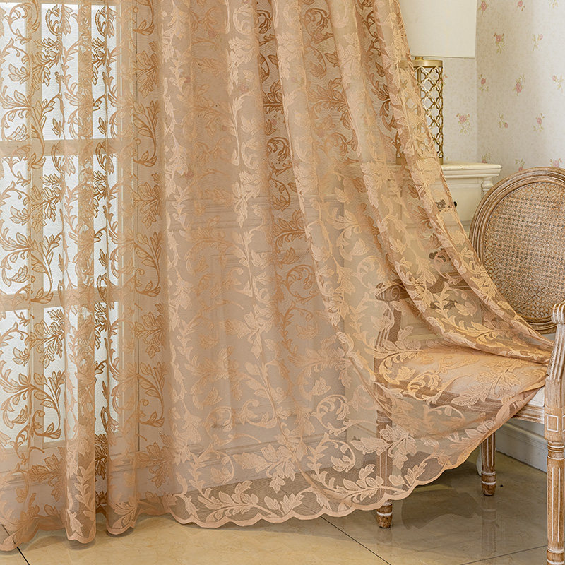 淘外贸窗纱挂钩式绣花叶子纱帘透光滤光飘逸白色田园阳台客厅落地窗