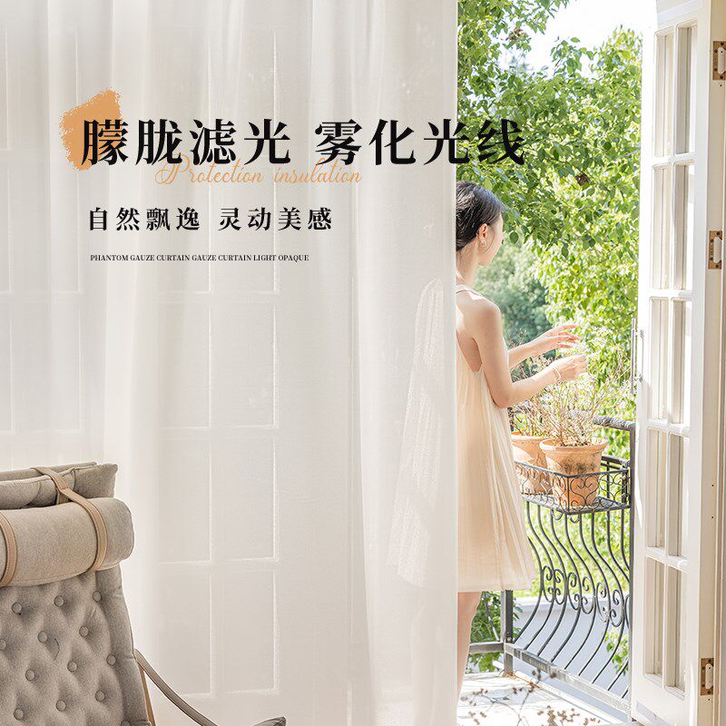 2024年新款幻影纱窗帘,以极简美学诠释现代家居新风尚。精选高品质白色透光纱料,轻盈飘逸,柔化阳光的同时确保室内明亮通透,实现“透光不透人”的隐私保护效果。适用于客厅、卧室、阳台及飘窗等多种空间,轻松搭配各种装修风格。细腻纹理与垂坠感兼具,随风轻舞间营造梦幻氛围。安装便捷,易清洗打理,兼顾美观与实用。幻影纱帘不仅提升空间质感,更带来舒适静谧的居家体验,是追求品质生活的理想之选。让光影与诗意,在每一寸窗景中悄然绽放。