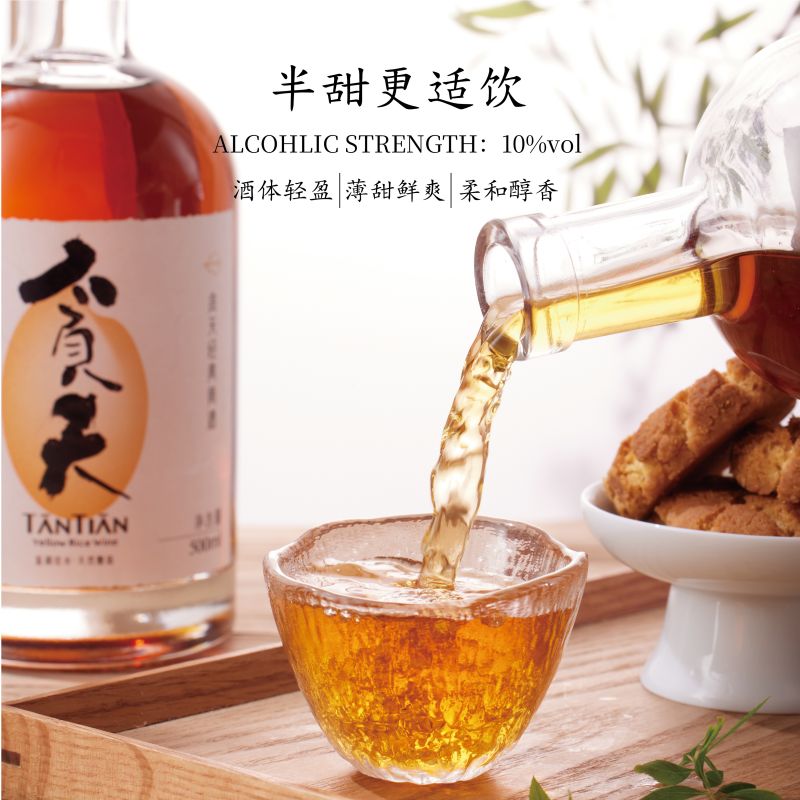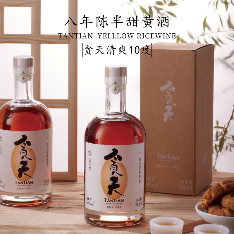 天猫贪天TANTIAN 清爽10度黄酒 8年陈手工绍兴半甜黄酒500ml*2瓶