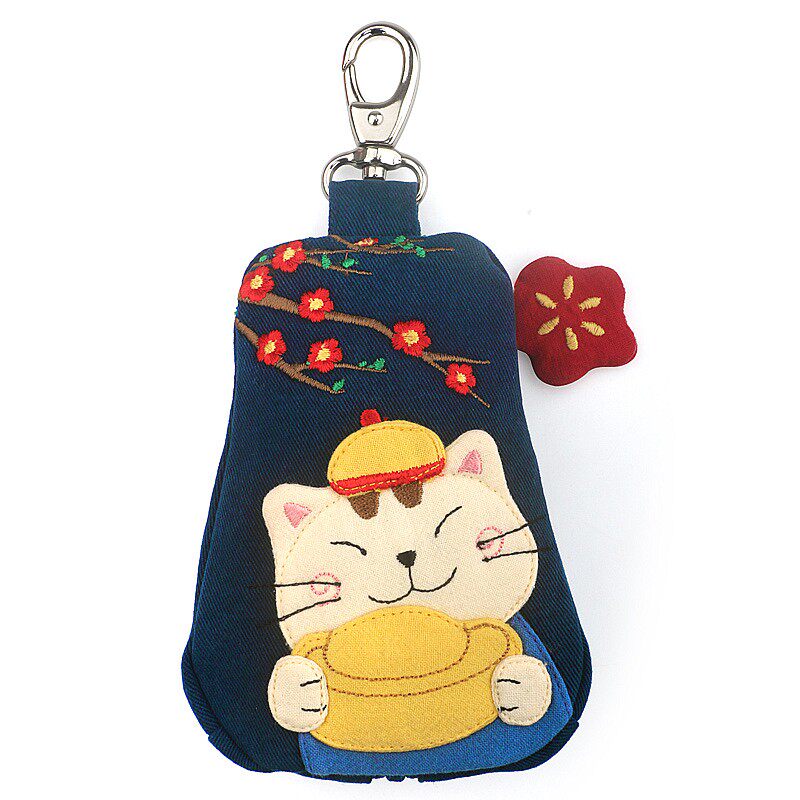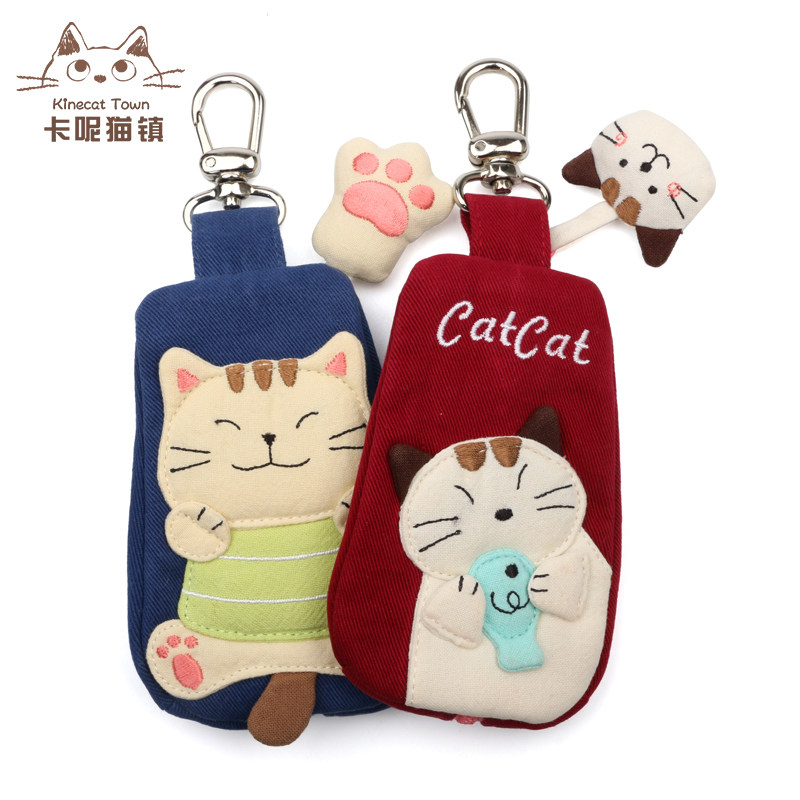 淘宝日本插画KINECAT 可爱猫咪纯棉女士卡通创意钥匙包汽车钥匙包包邮