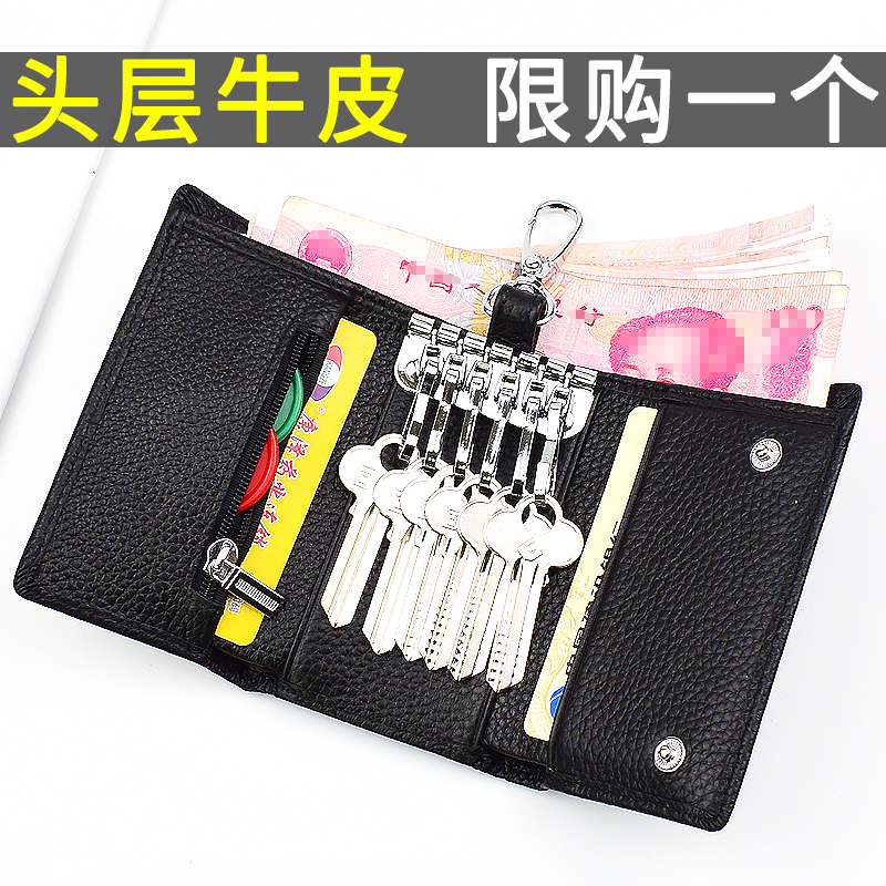天猫头层牛皮钥匙包男士真皮简约多功能女式腰挂实用锁匙包小巧大容量