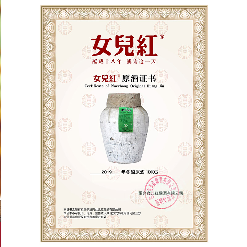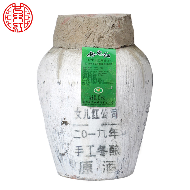 天猫绍兴女儿红黄酒 本色原酒花雕酒2019年手工冬酿原浆酒20斤10KG
