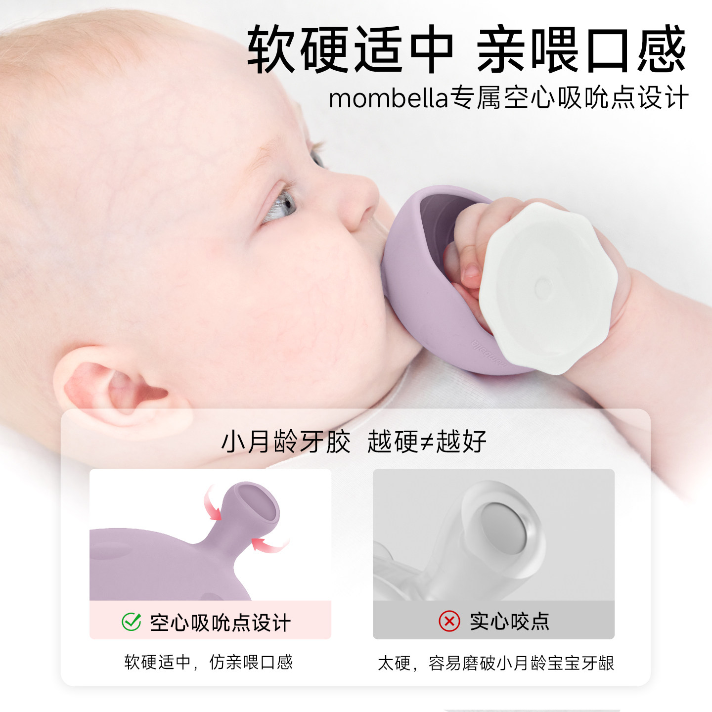 天猫Mombella小蘑菇安抚牙胶防吃手神器磨牙棒婴儿宝宝可水煮
