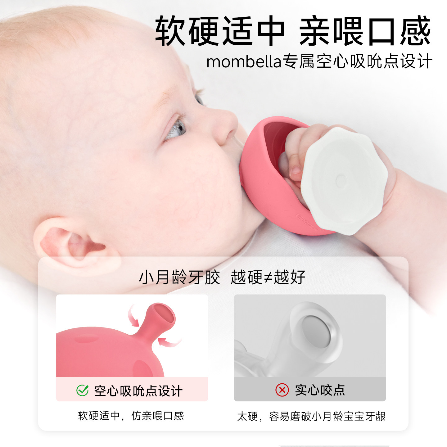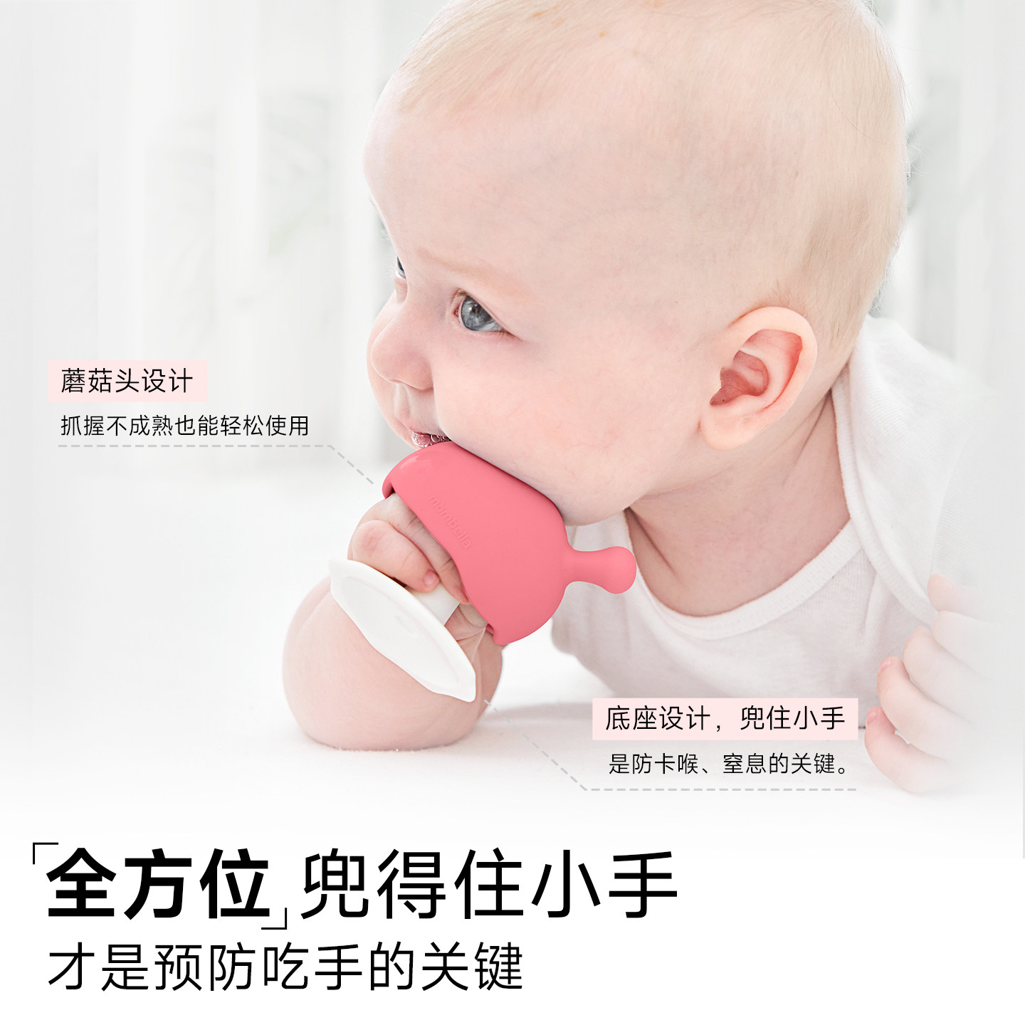 天猫mombella小蘑菇安抚牙胶小月龄宝宝防吃手玩具磨牙棒咬胶2346个月