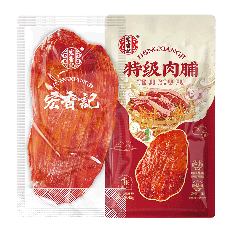 【香菇38女王节】宏香记特级猪肉脯45g,专为职场女性打造的营养零食。精选优质猪后腿肉,采用传统工艺慢火烘烤,口感紧实有嚼劲,肉香浓郁不腻。每包富含高蛋白,低脂肪,满足日常能量需求,是办公室补充体力的理想选择。独立小包装设计,方便携带,随时享受美味无负担。香菇节期间特别推出女王专享价,致敬每一位努力拼搏的职场女性。宏香记坚持无添加防腐剂,健康安全,让美味与健康兼得。无论是加班提神,还是午后小饿,这款猪肉脯都是贴心伴侣,助力你在忙碌中保持活力与自信。