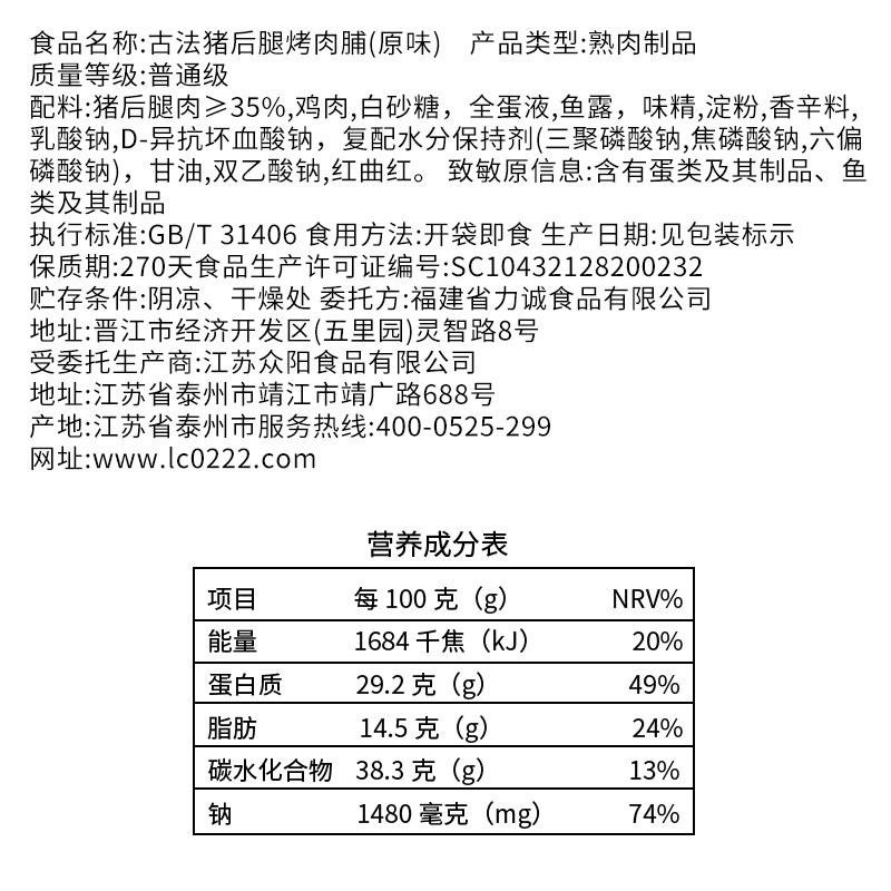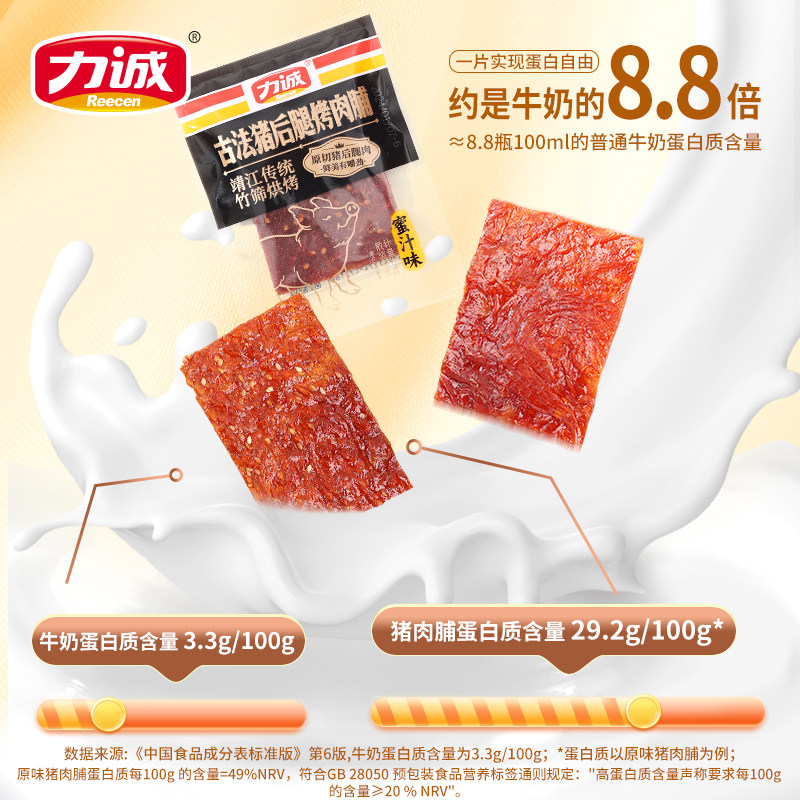 天猫力诚靖江猪后腿烤肉脯高蛋白传统竹筛工艺严格控温烤制即食零食