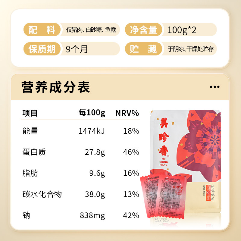 美珍香辣猪肉脯肉干,精选优质猪后腿肉,经传统工艺腌制烘烤而成,肉质紧实、纹理细腻,香辣入味却不腻口。每一片都饱含肉香,口感微韧有嚼劲,是办公室解馋、午后休闲的绝佳选择。采用独立小包装设计,方便携带、卫生保鲜,随时随地享受美味。无论是日常零食、旅行伴侣,还是馈赠亲友的伴手礼,皆显贴心与品味。无防腐剂添加,健康放心,让美味与健康兼得。美珍猪肉脯,以匠心工艺还原地道风味,一口难忘,回味无穷。