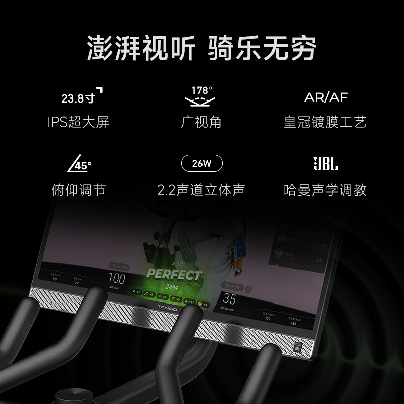 TANGO音乐飞轮静音自行车是一款专为青少年及家庭用户设计的动感单车健身器材,集运动、娱乐与静音体验于一体。采用磁控静音飞轮技术,运行平稳低噪,不扰邻,适合居家使用。搭配专属音乐节奏课程,让骑行更富动感与乐趣,激发运动热情。人体工学设计,座椅与把手可调节,适配不同身高,安全舒适。小巧机身节省空间,适合客厅、卧室等场景。无论是日常锻炼、体能提升,还是作为新年礼物送给青少年,TANGO都是健康生活的理想选择,让运动更轻松、更愉悦。