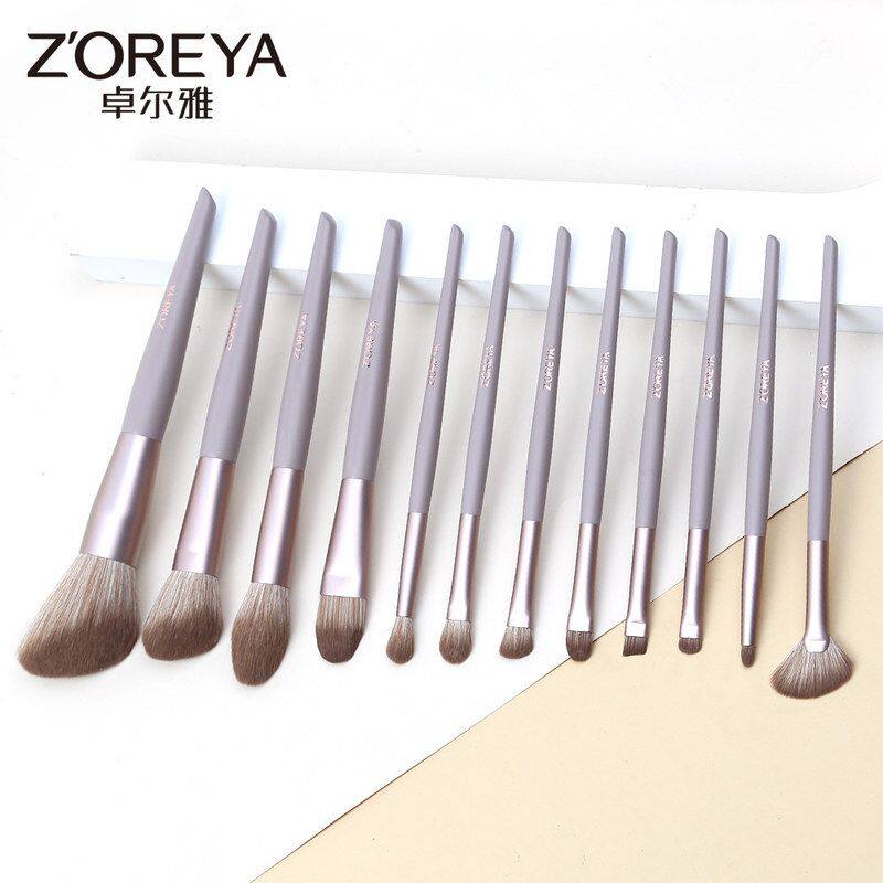 淘宝化妆刷套装全套12支奶咖色粉底刷眼影刷唇刷斜切尖尾美妆工具套装