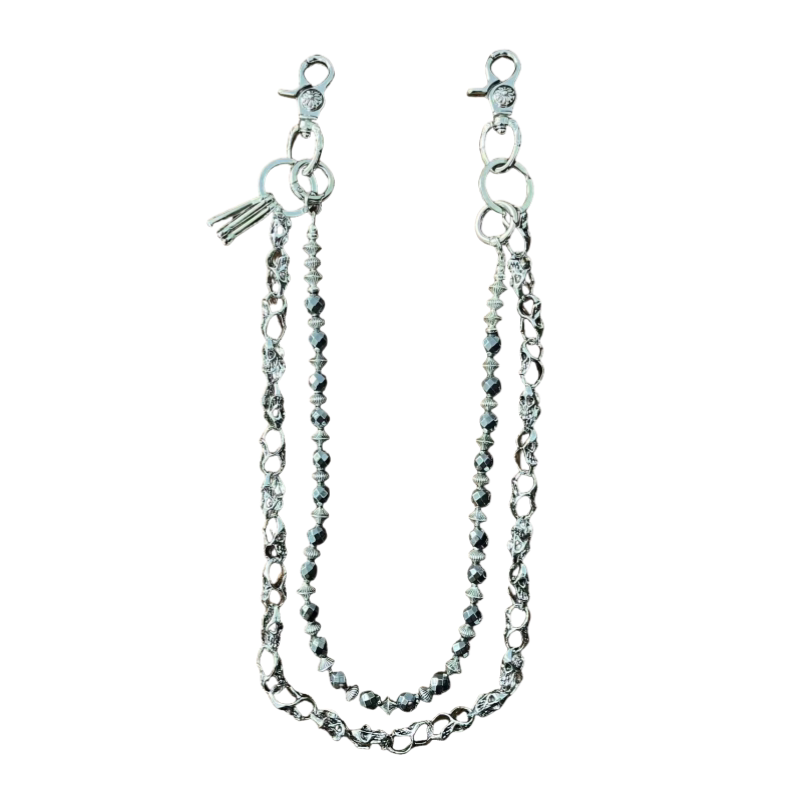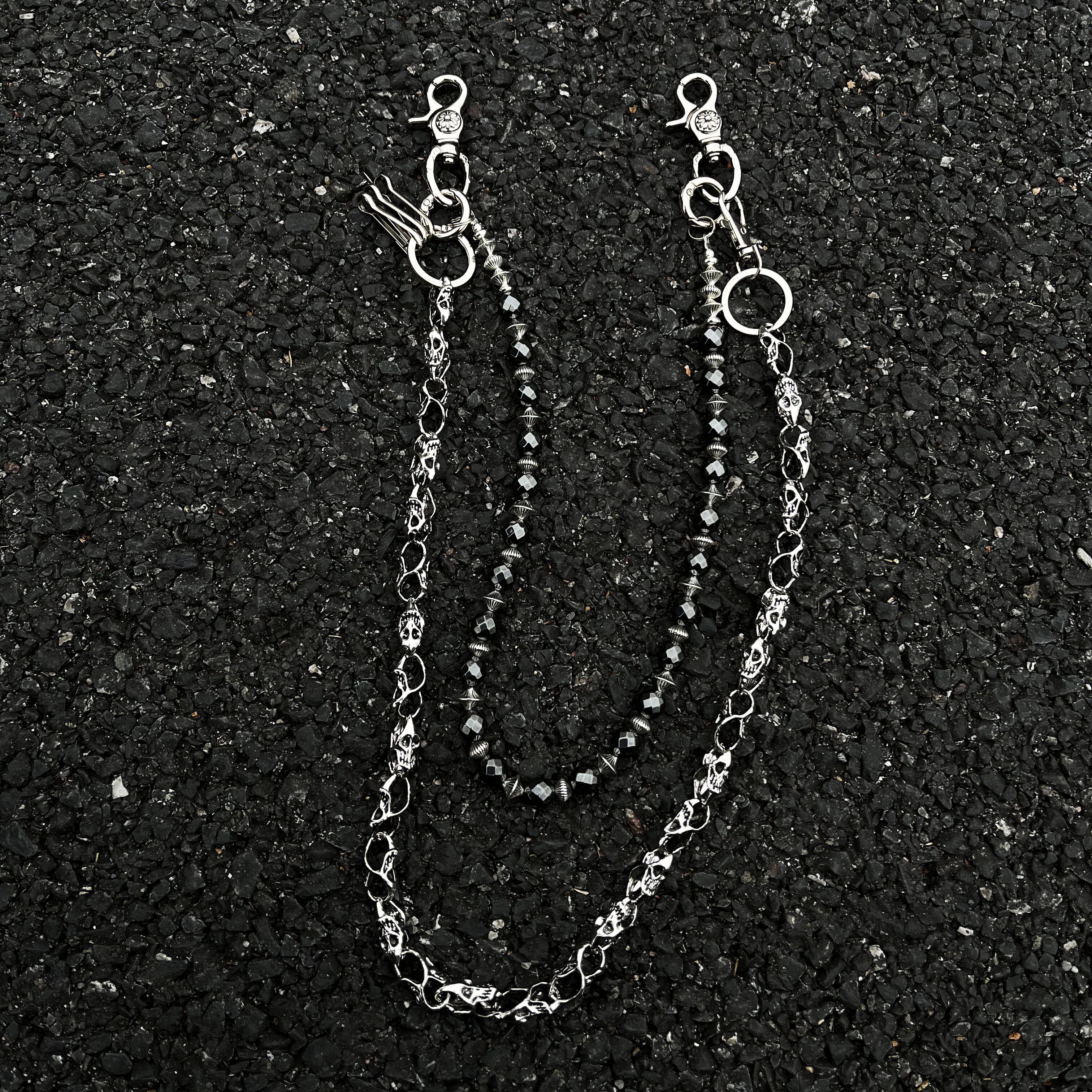 Ironworks黑胆石骷髅头裤链是一款融合美式街头风格与暗黑美学的金属双层腰间挂饰。采用高品质合金打造,表面做旧处理,质感硬朗,层次分明。中央镶嵌天然黑胆石,搭配立体骷髅头造型,彰显个性与不羁态度。双层链条设计增强视觉冲击力,可灵活调节长度,适配不同裤型与穿搭风格。无论是搭配工装裤、牛仔裤,还是作为包挂件使用,都能为整体造型增添酷感与细节亮点。适用于嘻哈、摇滚、机车等多种风格,是追求潮流与态度的型男必备配饰,兼具装饰性与实用性,展现独特自我表达。
