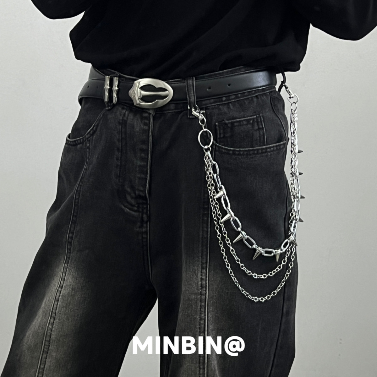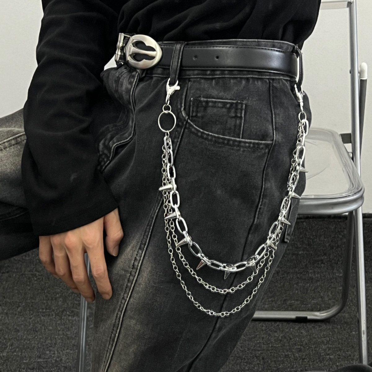 淘宝MINBIN 疯狂猎人尖刺朋克牛仔裤链挂件小众设计金属嘻哈腰链配饰