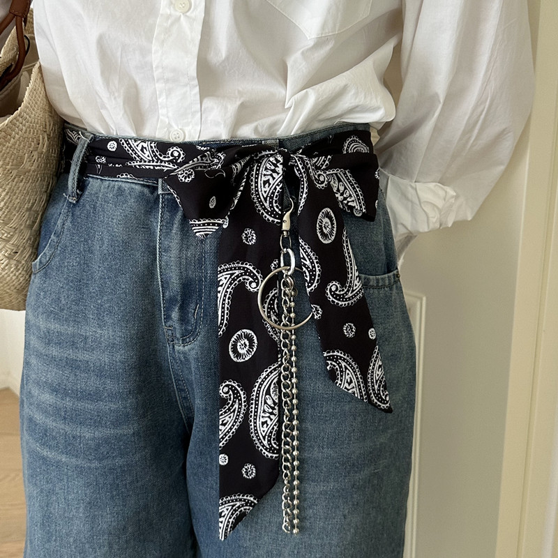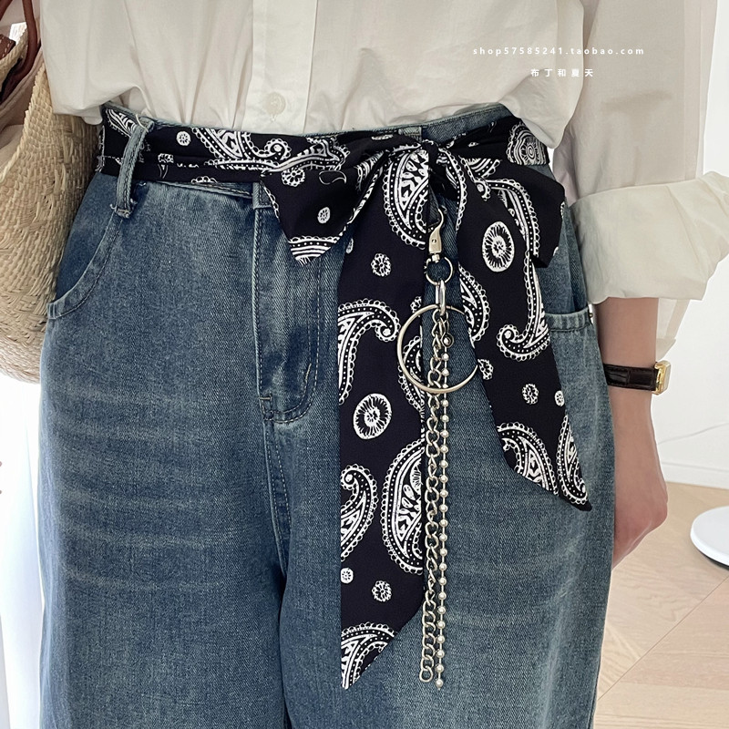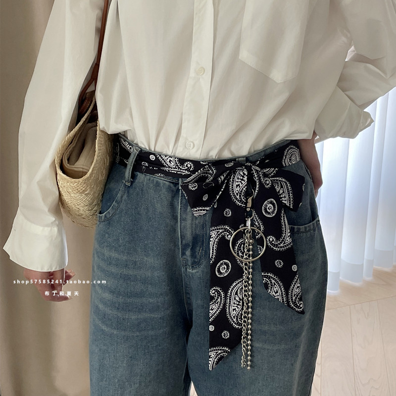 淘宝布丁和夏天 | 夏季新款度假风腰花黑色丝巾装饰腰带链条裤链挂件