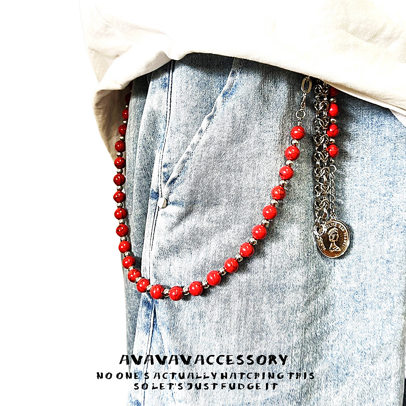 小心袖口"Cleanfit复古做旧红玛瑙串珠裤链日常百搭通勤男女配饰