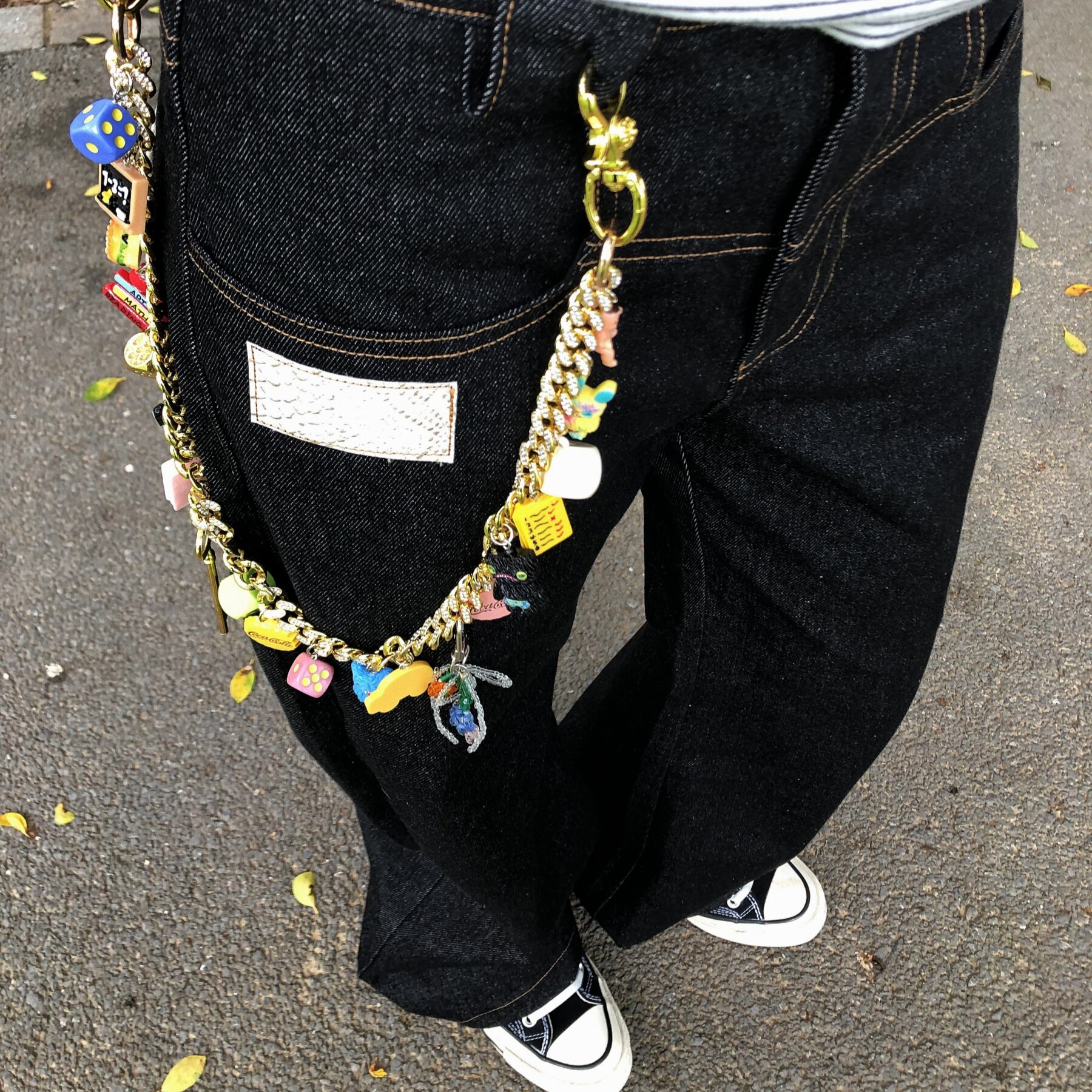 CGYYDS 24ss先锋重工双层夹珠珍珠链条宝石镶嵌手工裤链真皮挂饰