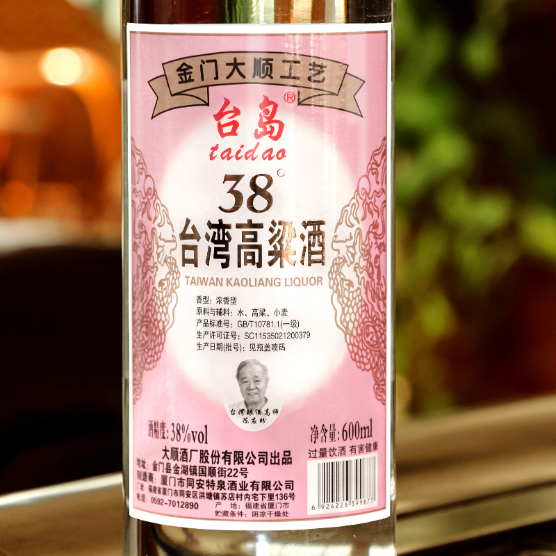 天猫台岛台湾高粱酒38度600ml*6瓶粮食酒浓香厦门高粱白酒整箱