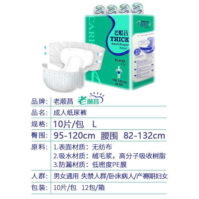 天猫老顺昌成人纸尿裤老人用加厚型尿布湿大号尿不湿一次性尿片尿垫L
