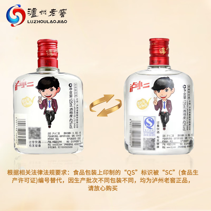 天猫泸州老窖泸小二42度125ml*24瓶整箱装浓香型白酒口粮小酒
