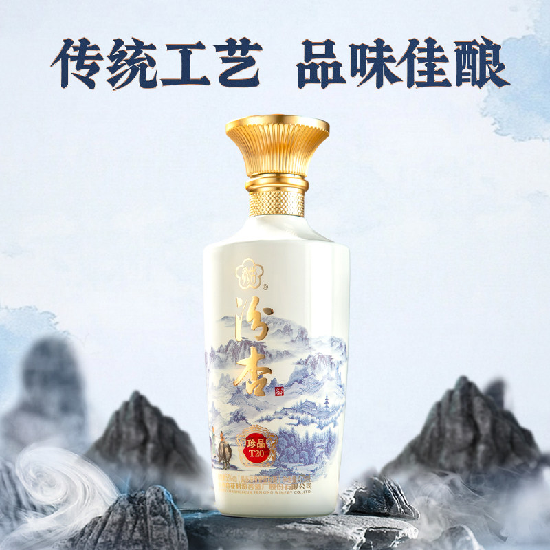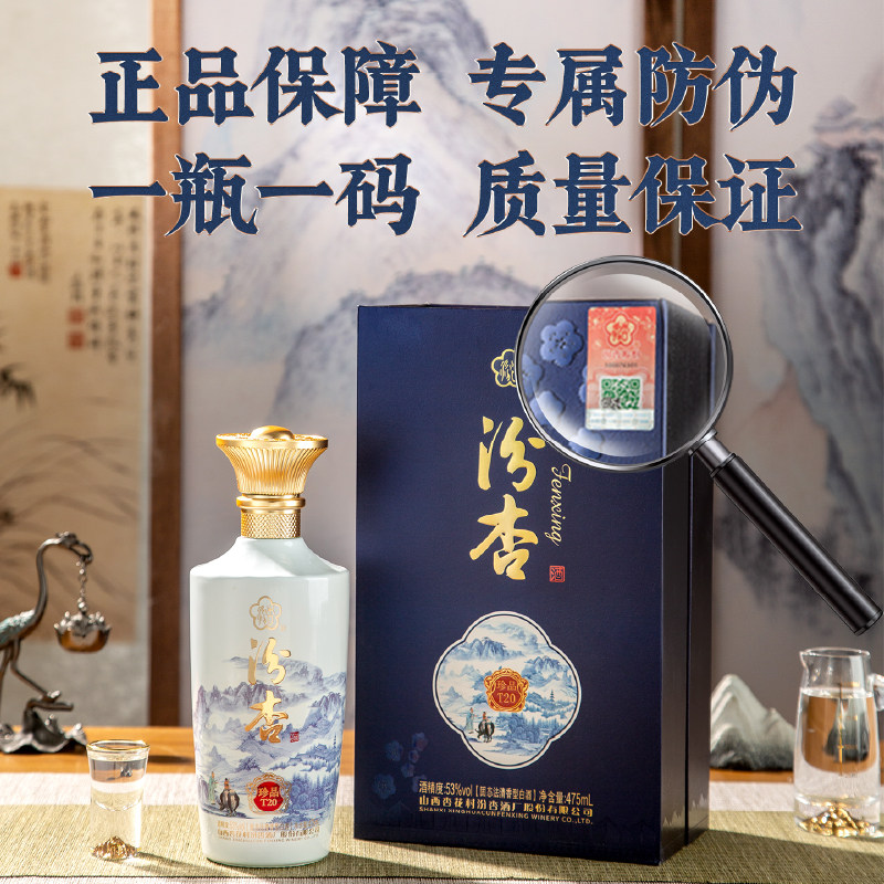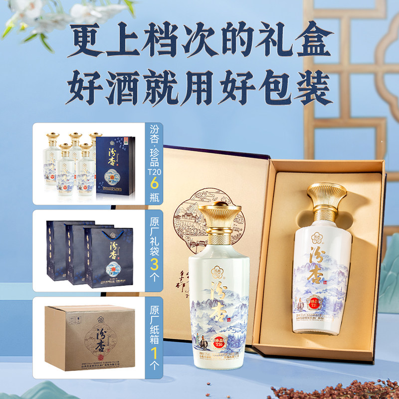 天猫汾杏珍品T20清香型53度纯粮食白酒475ml整箱官方旗舰送礼送长辈