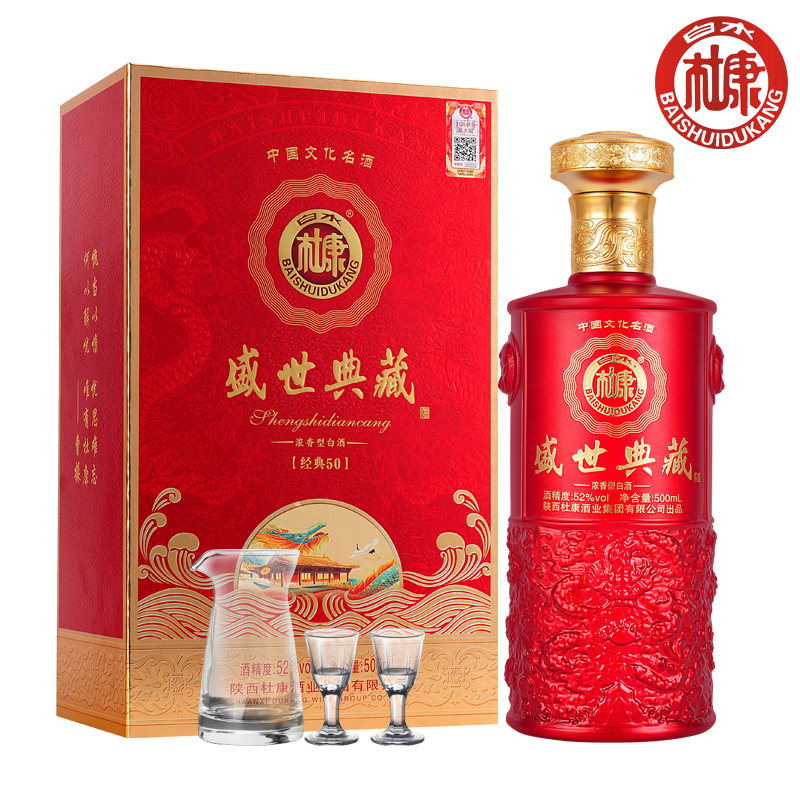 天猫礼盒装白酒白水杜康52度浓香型白酒整箱6瓶送酒具送礼品袋经典50