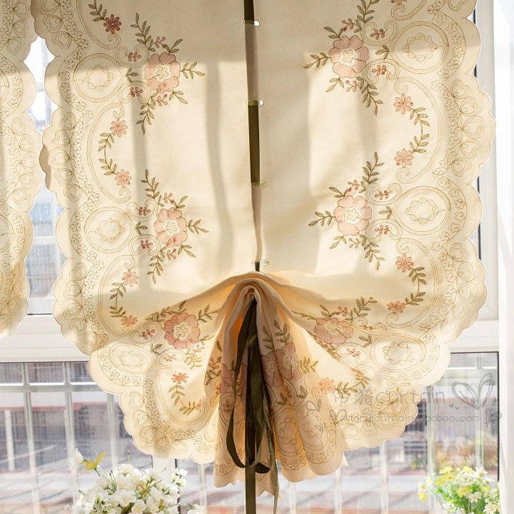 淘宝锦绣 欧式高档刺绣提拉帘气球扇形帘 升降罗马帘飘窗成品窗帘粘贴