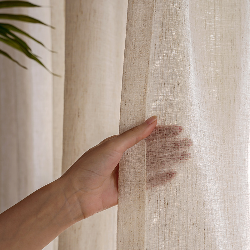 淘宝法式中古风复古亚麻纱帘透光不透人棉麻白纱窗帘客厅卧室窗纱布料