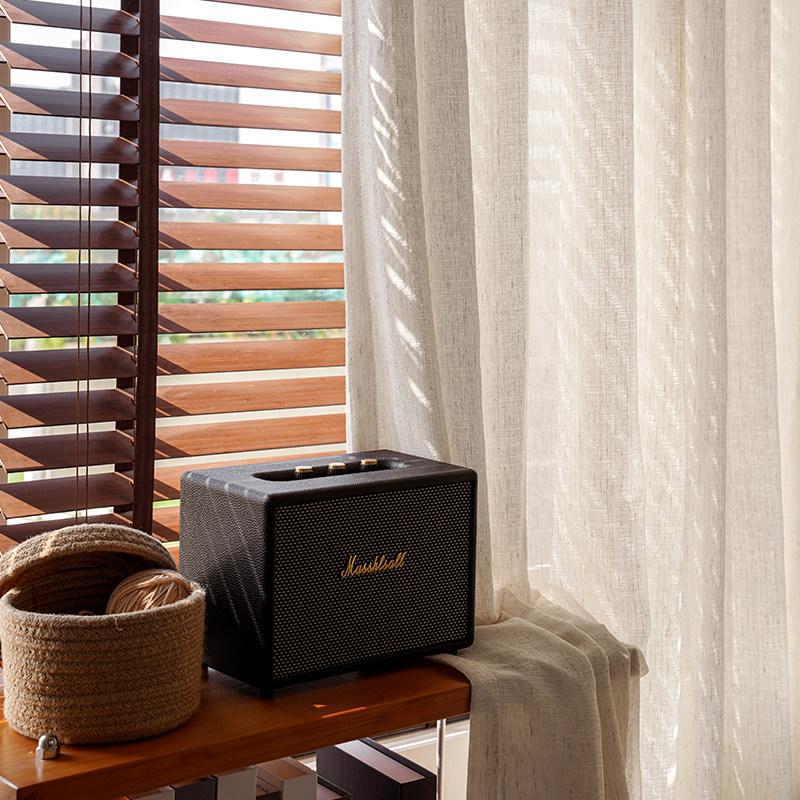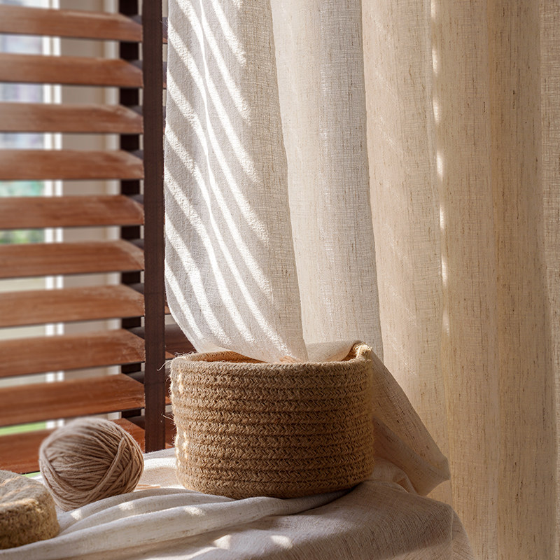 淘定制中式透光不透人亚麻窗纱复古民宿条纹棉麻窗帘纱帘侘寂风日式