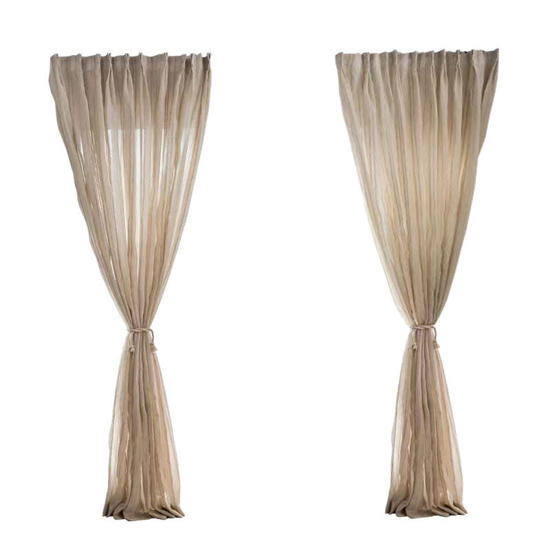 淘宝定制中式透光不透人亚麻窗纱复古民宿条纹棉麻窗帘纱帘侘寂风日式