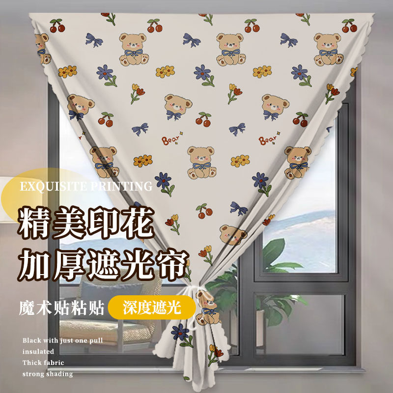 天猫窗帘全遮光2025新款拆无痕技术魔术贴免打孔安装租房遮光防晒隔热