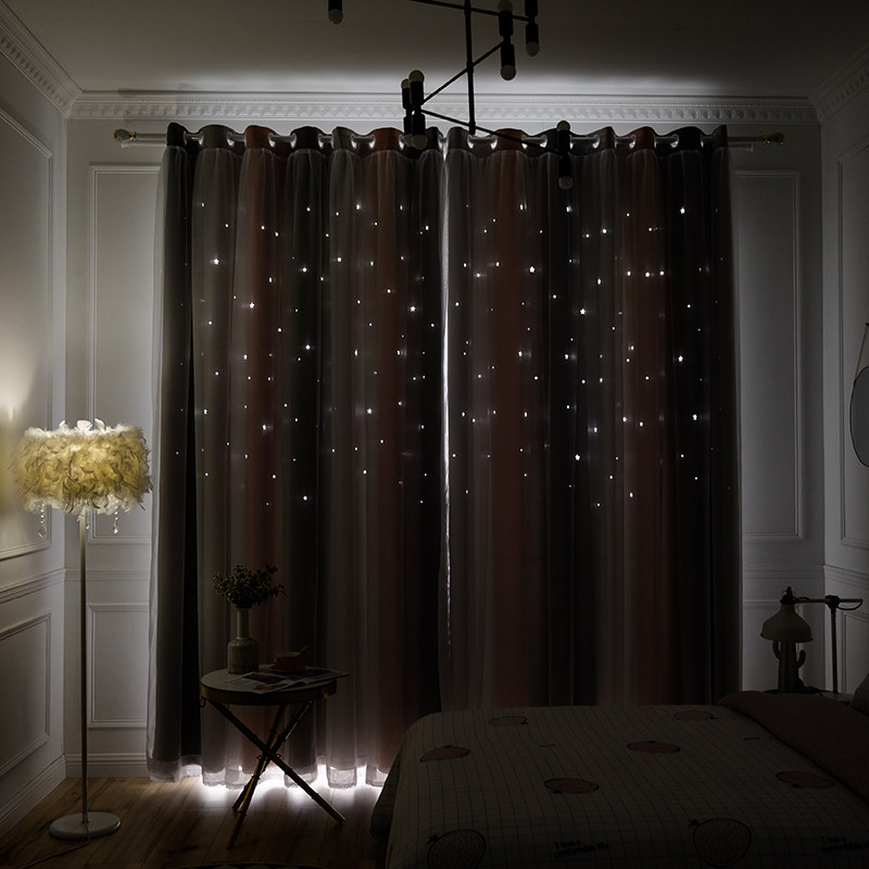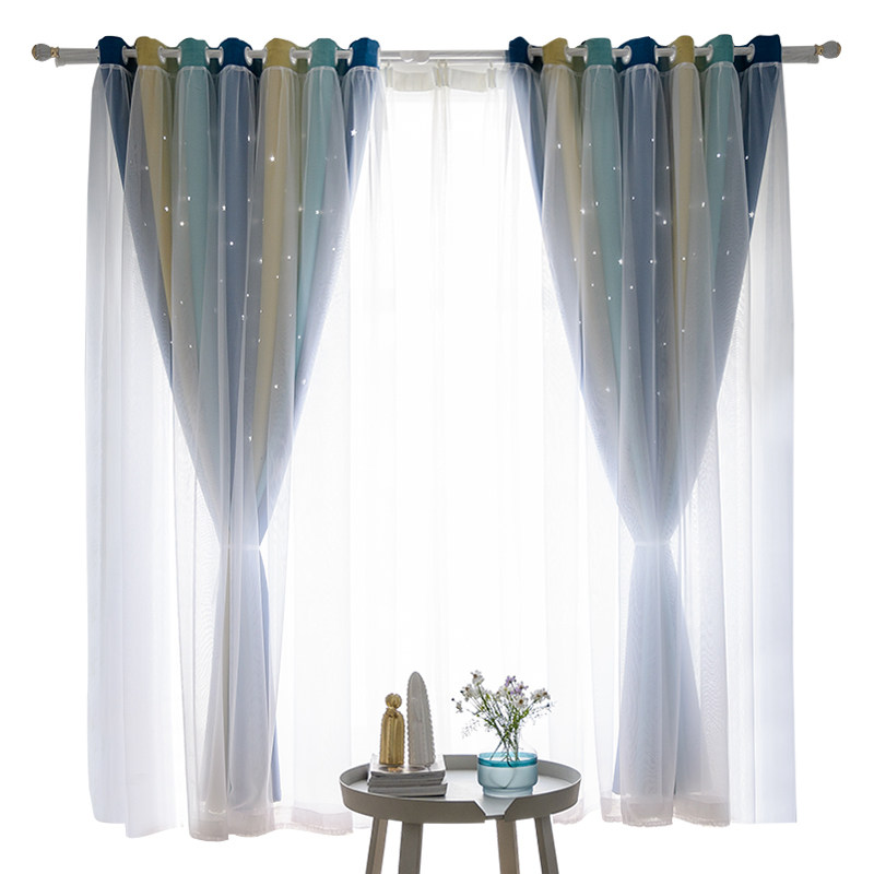 天猫抖音网红渐变镂空星星遮光窗帘成品少女卧室客厅双层ins风飘窗帘