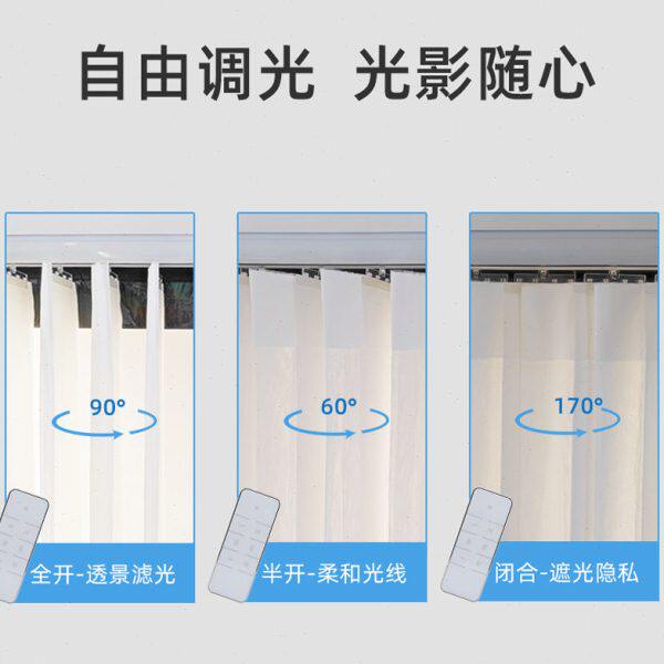 梦幻帘垂直帘纱智能语音竖百叶帘导轨,是一款融合现代科技与美学设计的电动窗帘产品,适用于长沙及全国各类家居与办公空间。采用高品质透光纱帘材质,实现透光不透人,保障隐私的同时营造柔和光影效果。支持智能语音控制,兼容主流智能家居系统,可通过手机APP或语音指令轻松调节开合角度与高度。静音导轨设计,运行平稳顺滑,电动驱动更便捷省力。竖百叶结构灵活调节光线,兼具装饰性与实用性。安装简便,适配多种窗型,是现代智能生活的理想选择,为长沙用户打造舒适、时尚、智能的居家体验。