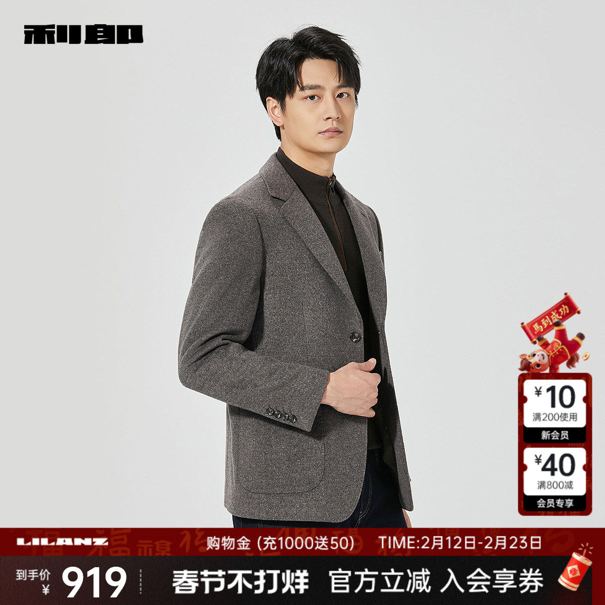 天猫【骆驼绒】利郎官方 短款毛呢大衣男士商务休闲2025冬季西装外套