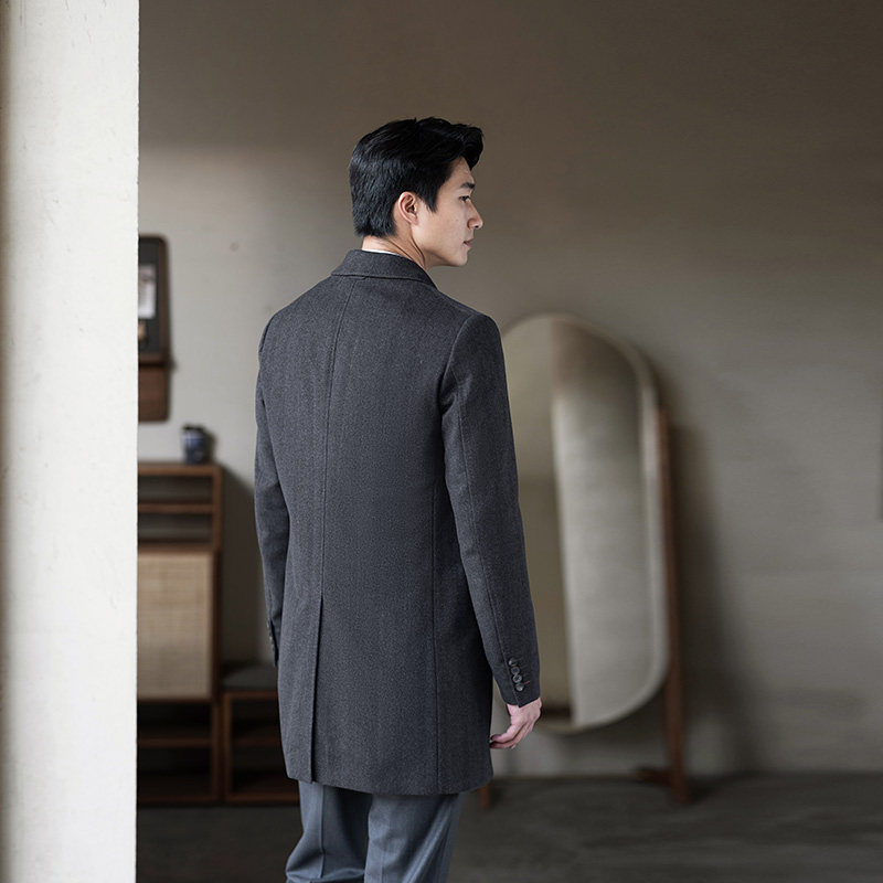 石见山轻量轻奢山羊绒羊毛双面呢子大衣男士中长款男款毛呢外套