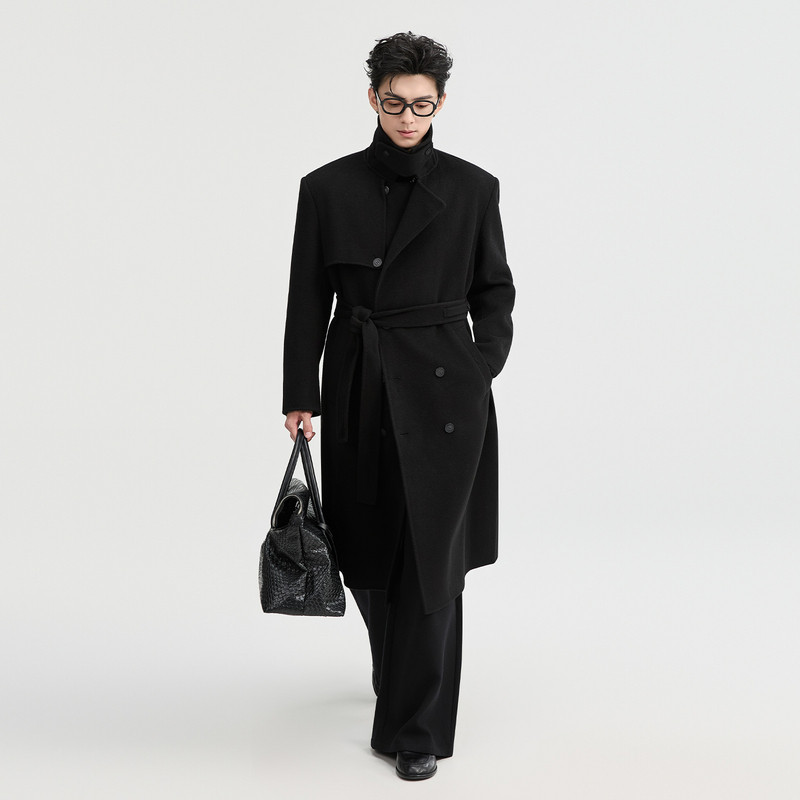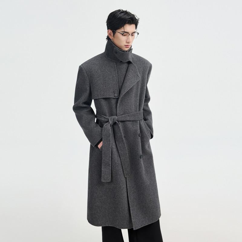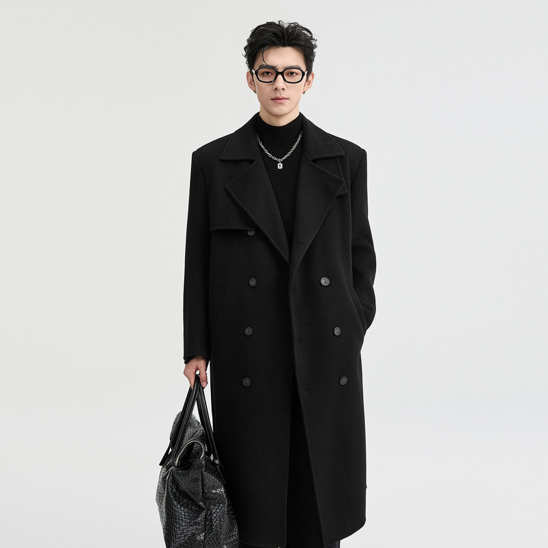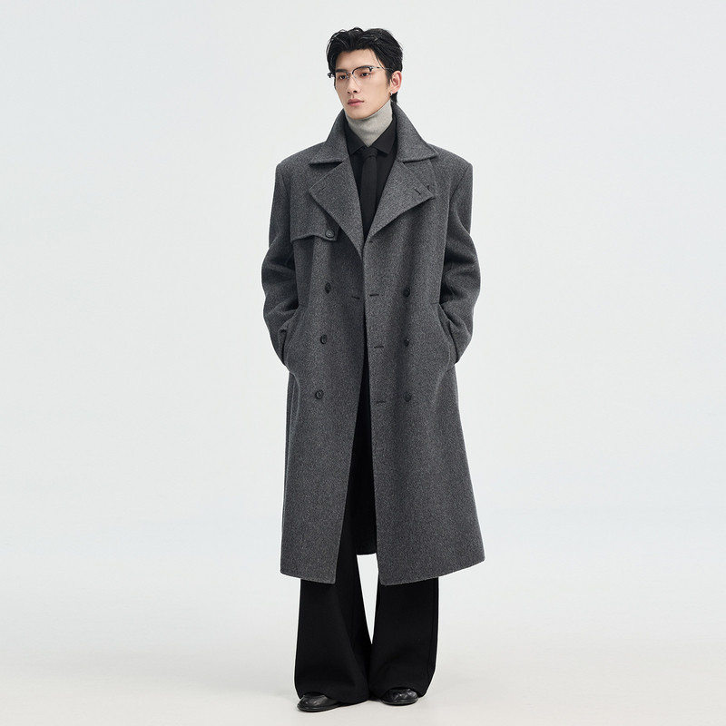 石见山轻量轻奢山羊绒羊毛双面呢子大衣男士中长款男款毛呢外套