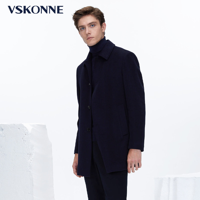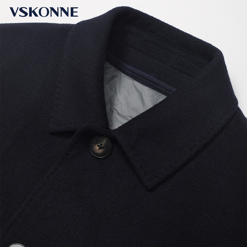 天猫VSKONNE威斯康尼男大衣中长款中青年羊毛桑蚕羽绒内胆可拆卸大衣