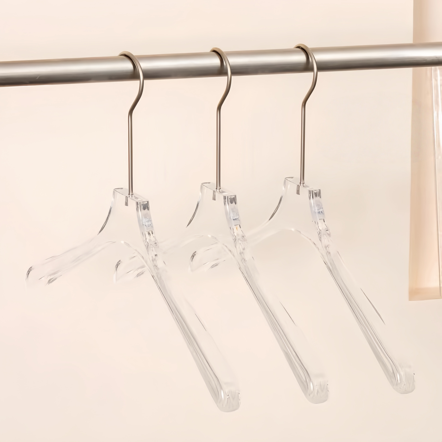 这款男装专用衣架采用高品质亚克力材质,通体透明,质感高级,搭配烟灰色设计,简约大气,完美契合现代男装陈列需求。加宽加厚结构稳固承重,专为大衣、西装等厚重衣物设计,有效防止变形。肩部防滑纹理处理,避免衣物滑落,保持版型挺括。衣架边缘圆润光滑,不伤衣物纤维,同时提升使用安全性。适用于服装店展示、高端衣橱收纳,兼具美观与实用性。透明亚克力材质让衣物更显突出,提升整体陈列效果,是男装店铺和追求品质生活的男士理想之选。